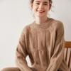 Outono pesado e inverno Novo suéter de caxemira feminino diamante torcido pescoço redondo tricotado casaco suéter solto cardigan três fios engrossado
