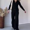 Outono 2023 nova Amazônia europeia e americana cross-border lapela zíper cor sólida slim sweater calças terno mulheres