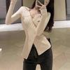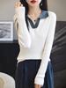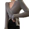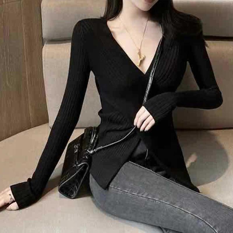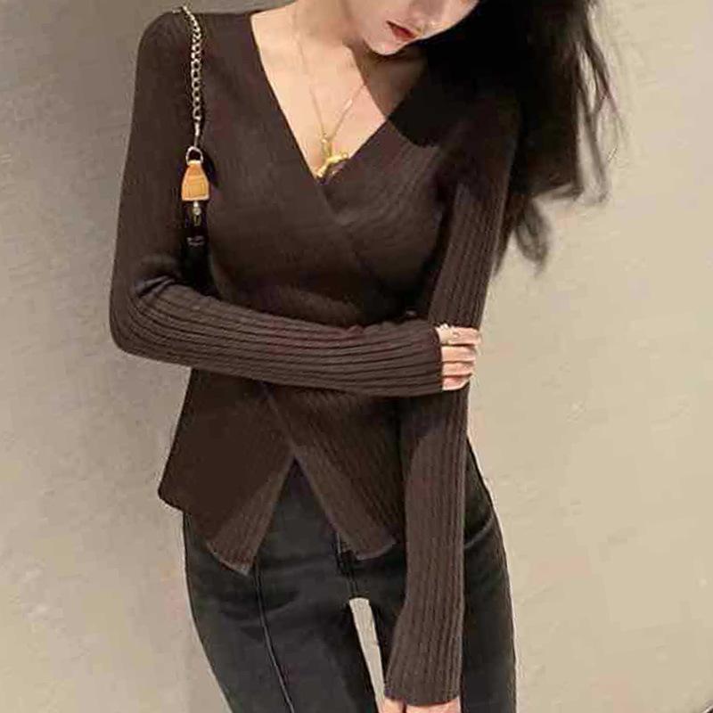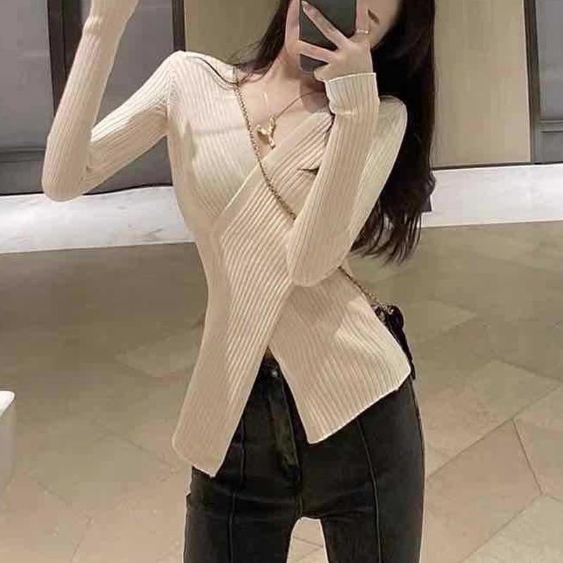 Sexy Cross V-neck Slim-fit Knitted Sweater 2 023 Outono/Inverno Novo coreano manga comprida Top Pullover base suéter para as mulheres