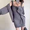 Outono Preguiçoso Estilo Novo Mid-length malha Cardigan Mulheres estilo coreano solto cor sólida lanterna manga casaco da moda