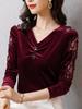 Outono 2022 Novo Estilo Coreano Decote em V All-match Slim-fit Bordado Veludo Camisa Base de Manga Longa Feminino Vestindo Camiseta Externa Moderna