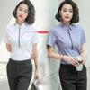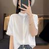 Primavera e Verão 2024 Nova Camisa T-shirt de manga curta Gola Vertical Feminina Acetato Cetim Elegante Simples Loose Top para Uso Exterior