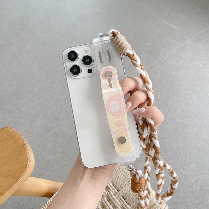 Cordão vertical do telefone móvel clipe traseiro suporte dos desenhos animados retangular bonito da moda corda tecida do telefone móvel clipe corda corda