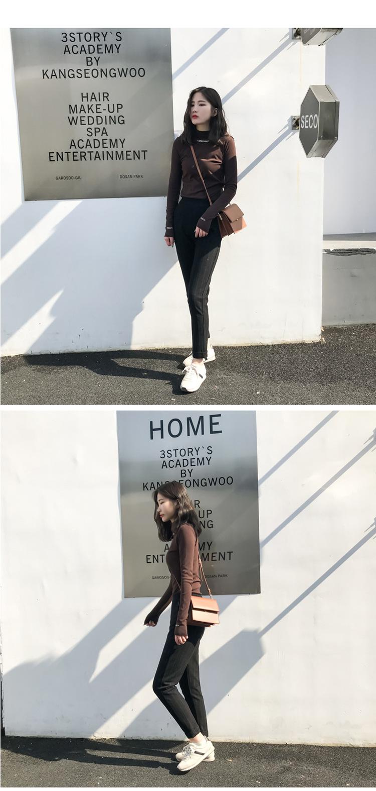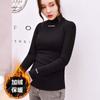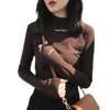 Camiseta Básica de Gola Média Alta Forrada com Lã para Mulheres, Pulôver de Outono e Inverno com Bordado de Letras, Modelagem Slim, Camiseta de Manga Comprida de Cor Sólida para Estudantes