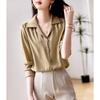 Camiseta falsa de duas peças de seda brilhante de manga comprida para mulheres 2025 novo estilo início do outono e inverno camisa de fundo interno slim para uso externo