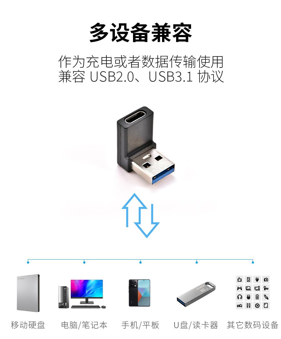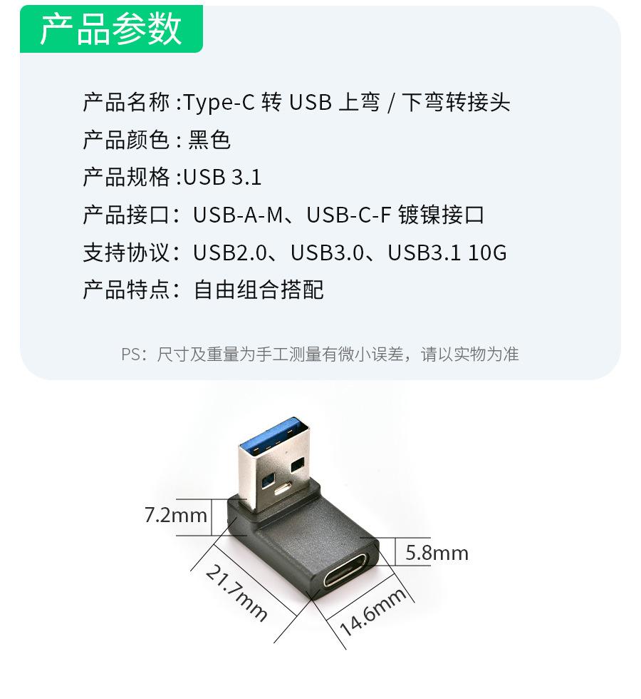 Type-C female to USB male Bend, Type-C female to USB male Bend