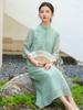 Novo cheongsam chinês 2024 roupas femininas Primavera Zen fivela feita à mão vestido emagrecedor feminino high-end terno Tang Hanfu