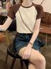 Camiseta Feminina de Algodão Puro Americana Retrô Raglan Manga Curta, Novo Design de Nicho Trendy de Verão com Top Chic Estilo Hong Kong