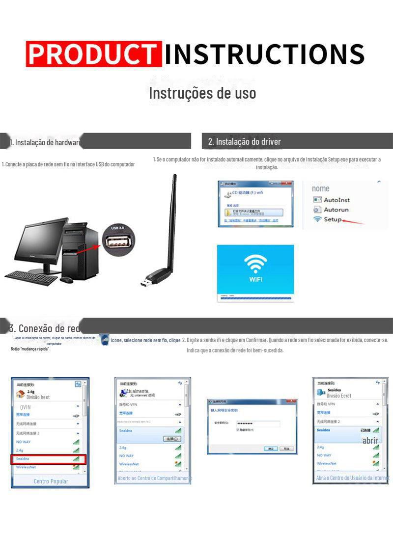 Placa de rede sem fio 600m antena desktop notebook drive-free computador usb wifi6 recebendo adaptador transmissor Novo