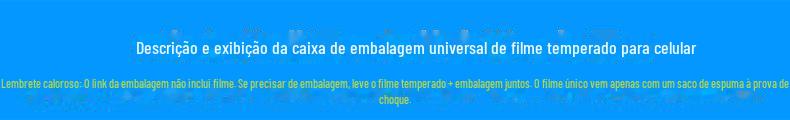 Observação:Nossa fábrica realiza a customização de qualquer tipo de película protetora para celular. Podemos personalizar a embalagem da marca com logotipo do próprio cliente de acordo com a quantidade. Consulte o atendimento ao cliente on-line para obter detalhes!