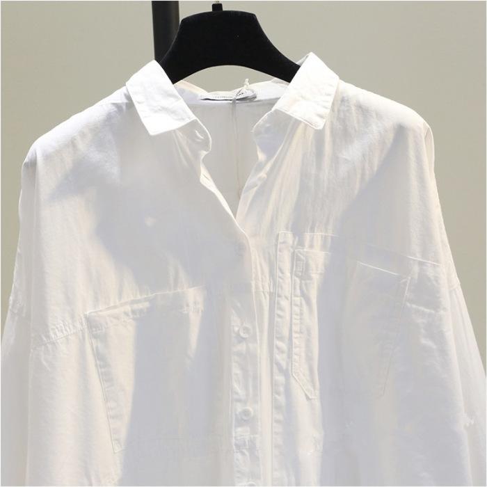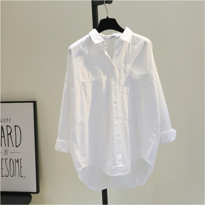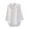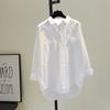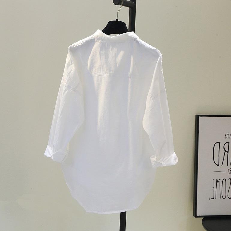 Novo Algodão Single-breasted Lapela Cor Sólida Camisa de Comprimento Médio Cardigan Branco Solto Camisa de Manga Comprida para Mulheres
