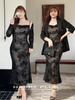 Vestido de Renda Runqi Plus Size Charme Parisiense com Estampa Floral Sereia 9096 Estilo Francês Sexy Vestido de Renda Sereia Camada Interna
