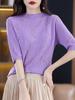 24 Nova metade alta gola renda oco meia manga suéter moda elegante all-match base meia manga top