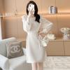 Shisanxing 2026 Outono Novo Roupa Feminina Plus Size Vestido Tricô de Seda Gelada com Manga de Rede Solta e Painel