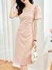 2311106-Francês elegante verão emagrecimento quadrado pescoço bolha manga plissado cintura fina slim-fit vestido de emagrecimento