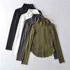 Camiseta Básica de Cintura de Formiga com Meio Zíper Estilo Europeu e Americano Feminina Outono e Inverno Nova Cor Pura Curva Justa