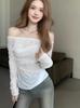 Estilo Americano Hot Girl Shoulder Blusa de manga comprida T-shirt protetor solar Mulheres início da primavera nicho Slim-fit emagrecimento Casual Top Ins Trendy