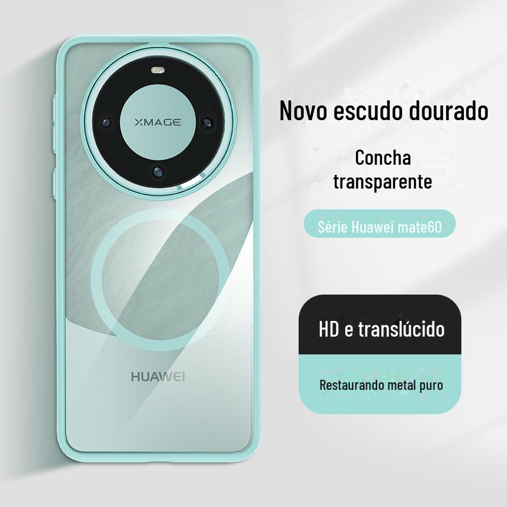 Adequado para Capa Protetora Huawei Mate60 Anel de Lente de Metal Transparente Magnética Mate60Pro+ Capa Simples para Celular