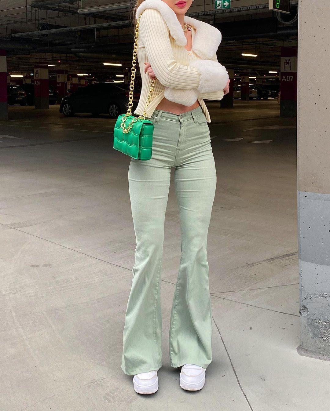 Comércio exterior europeu e americano Novo estilo coreano Micro-La Jeans feminino Cintura alta Slim-Fit Slimming Casual Wide-Leg Calças femininas da moda