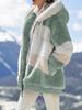 Estação independente europeia e americana venda quente outono e inverno solto contraste cor casaco com zíper engrossado capuz pelúcia multi-cor casaco com capuz para as mulheres
