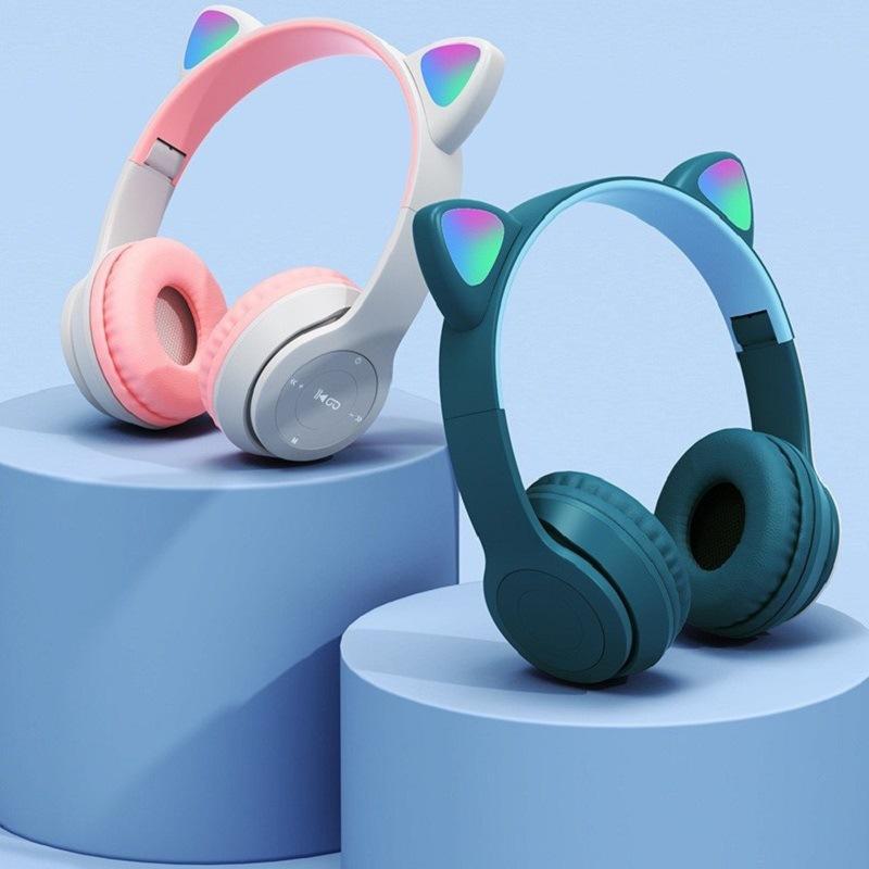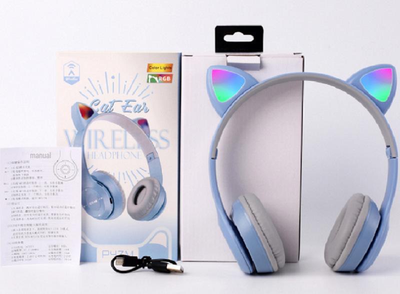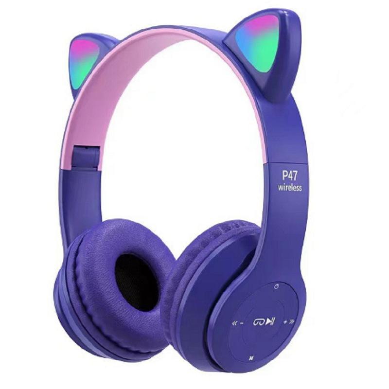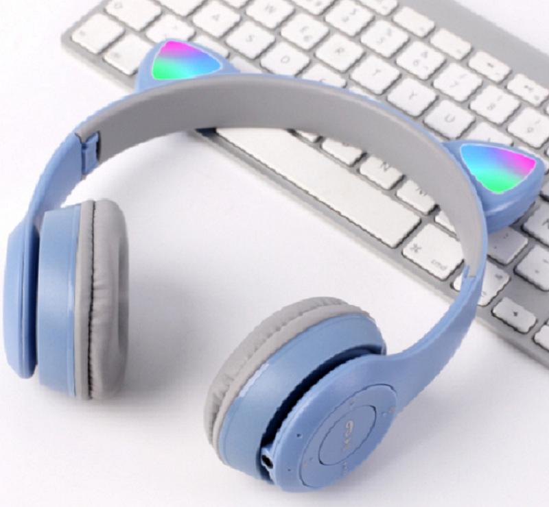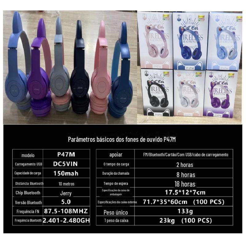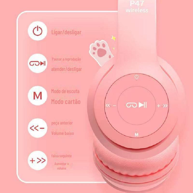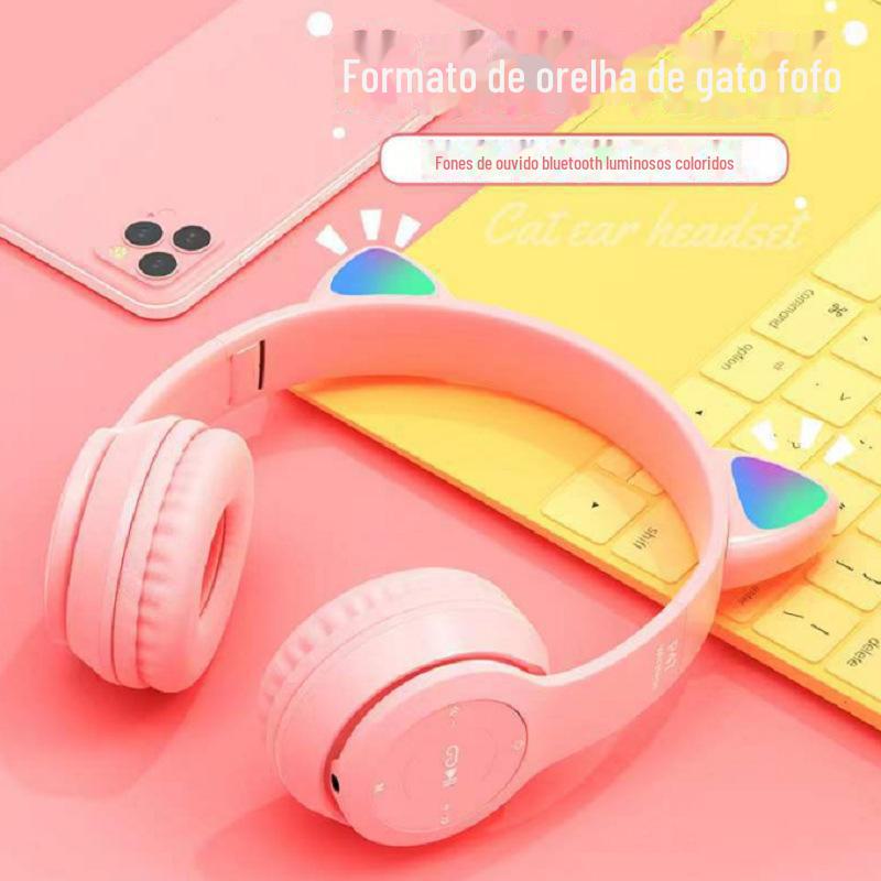 Fone de ouvido Bluetooth transfronteiriço P47M desenho animado luminoso gato orelha estéreo fone de ouvido fone de ouvido esportivo