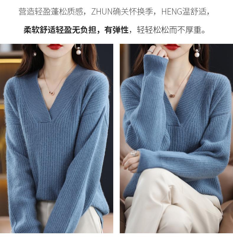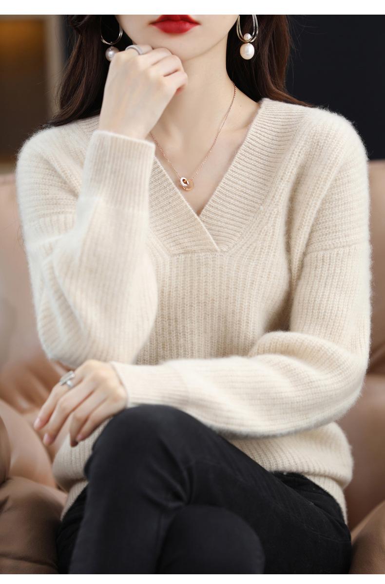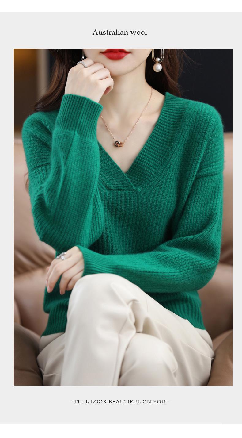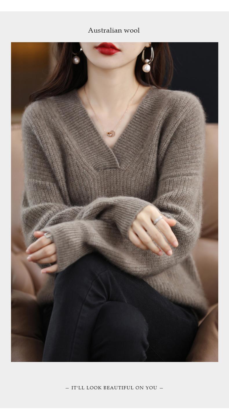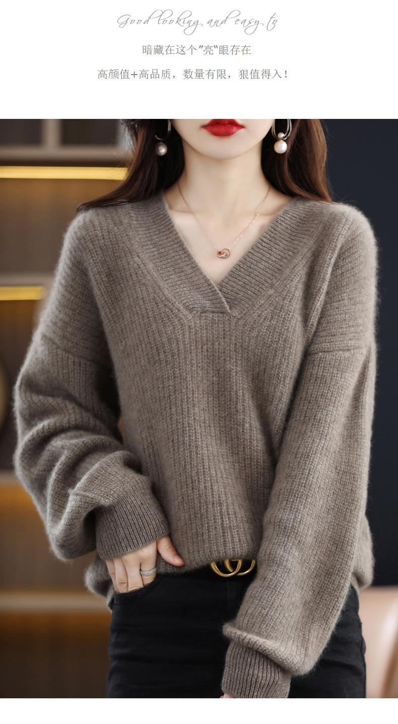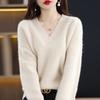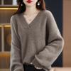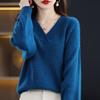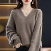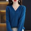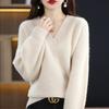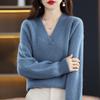 2024 Novo Outono e Inverno Caxemira Decote V Pulôver Tricot Feminino Manga Longa Cor Pura Solto Camiseta Base Top Moderno