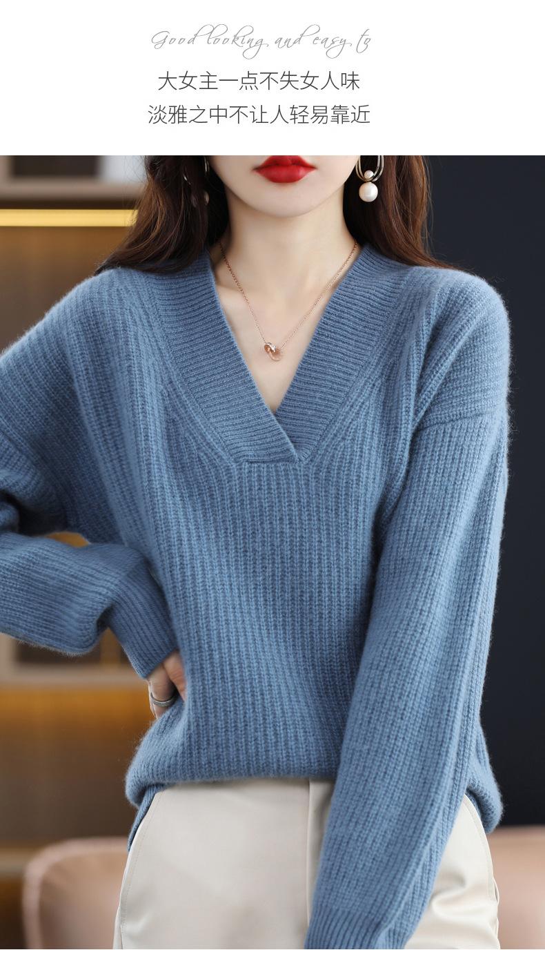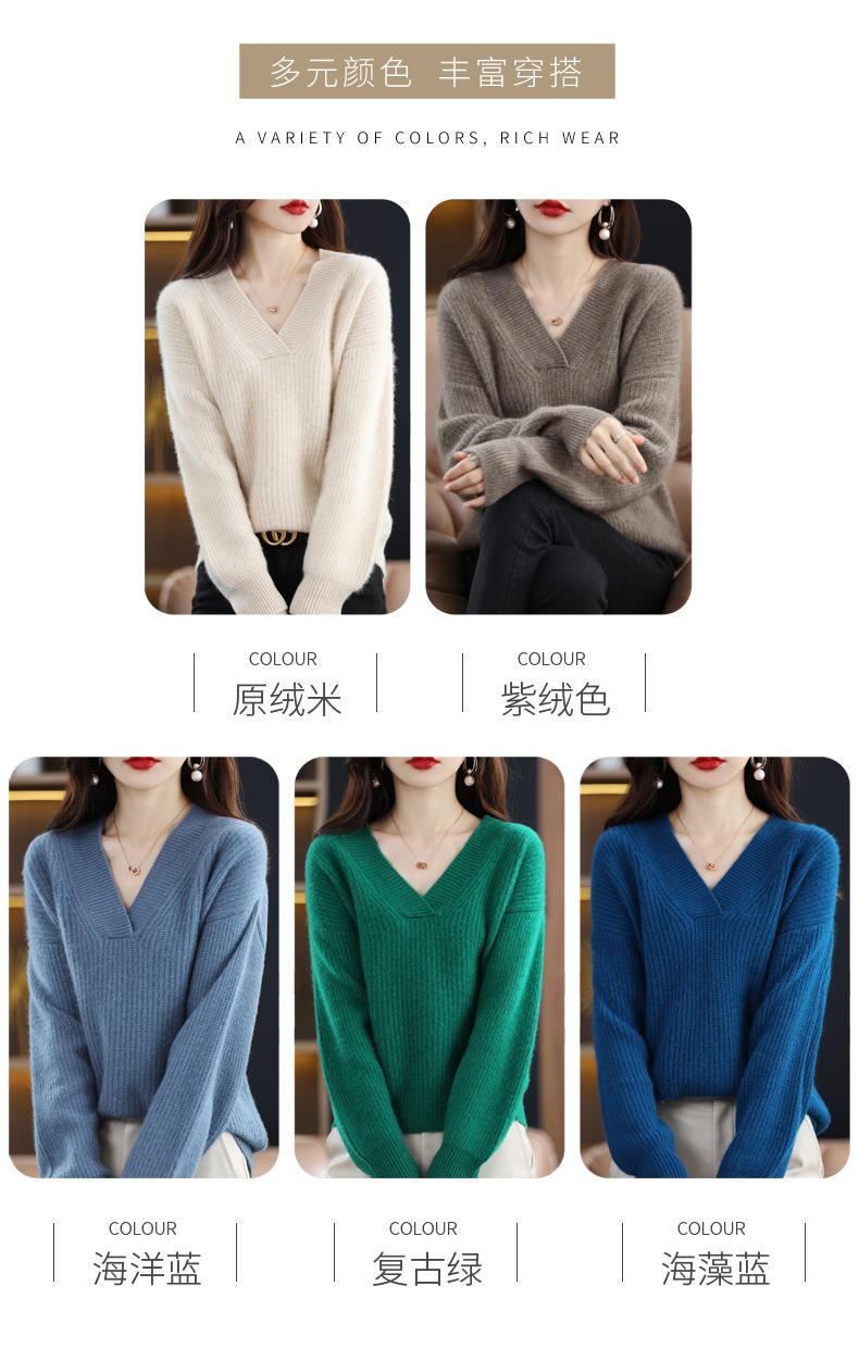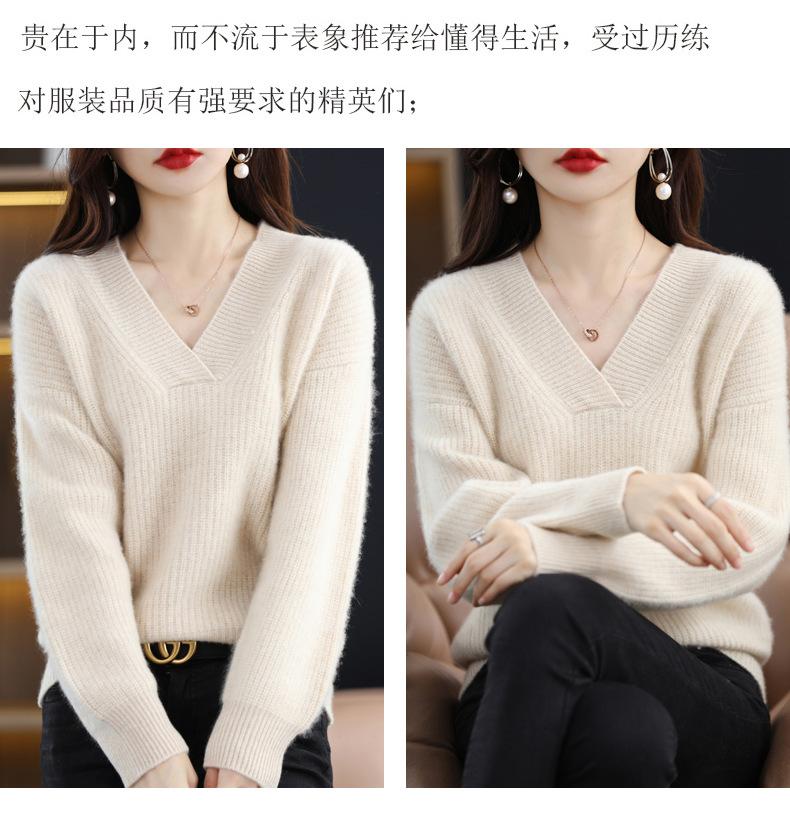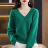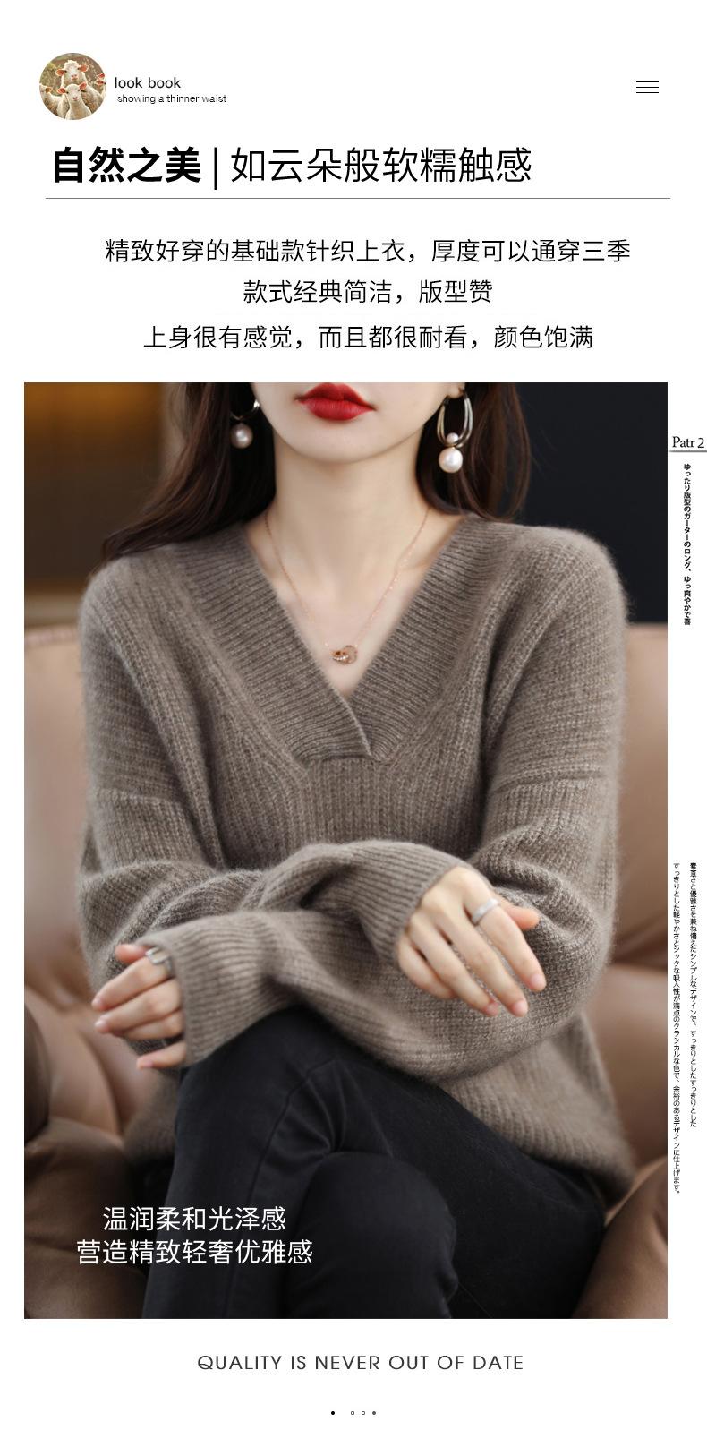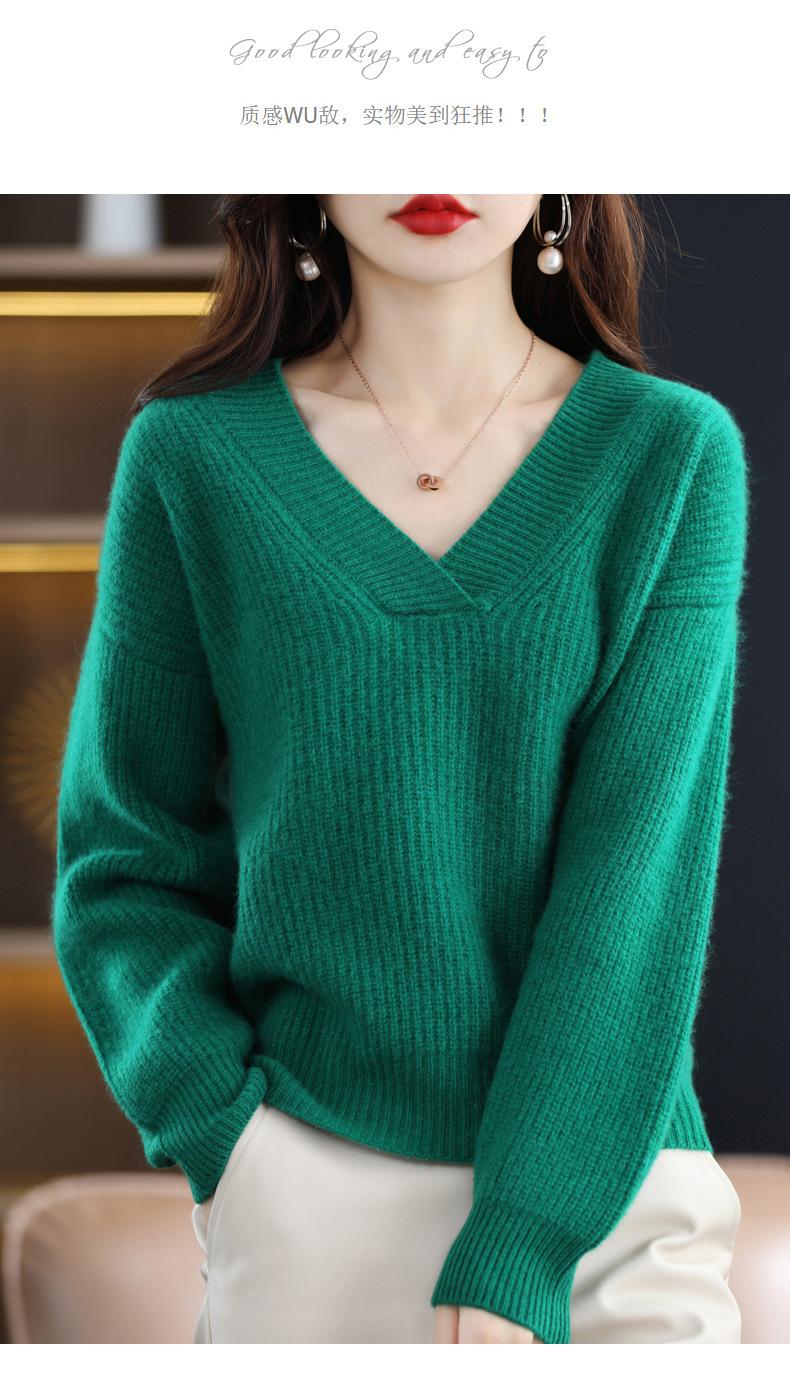 2024 Novo Outono e Inverno Caxemira Decote V Pulôver Tricot Feminino Manga Longa Cor Pura Solto Camiseta Base Top Moderno