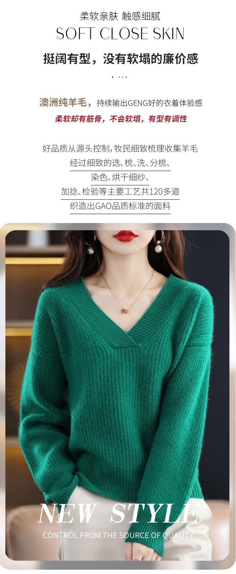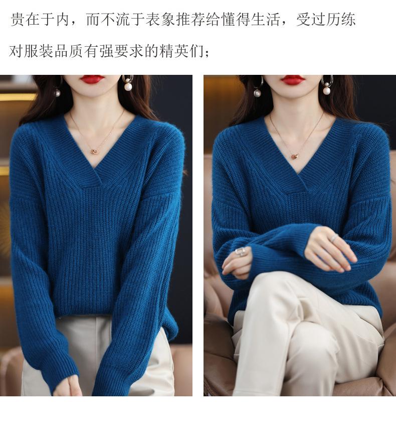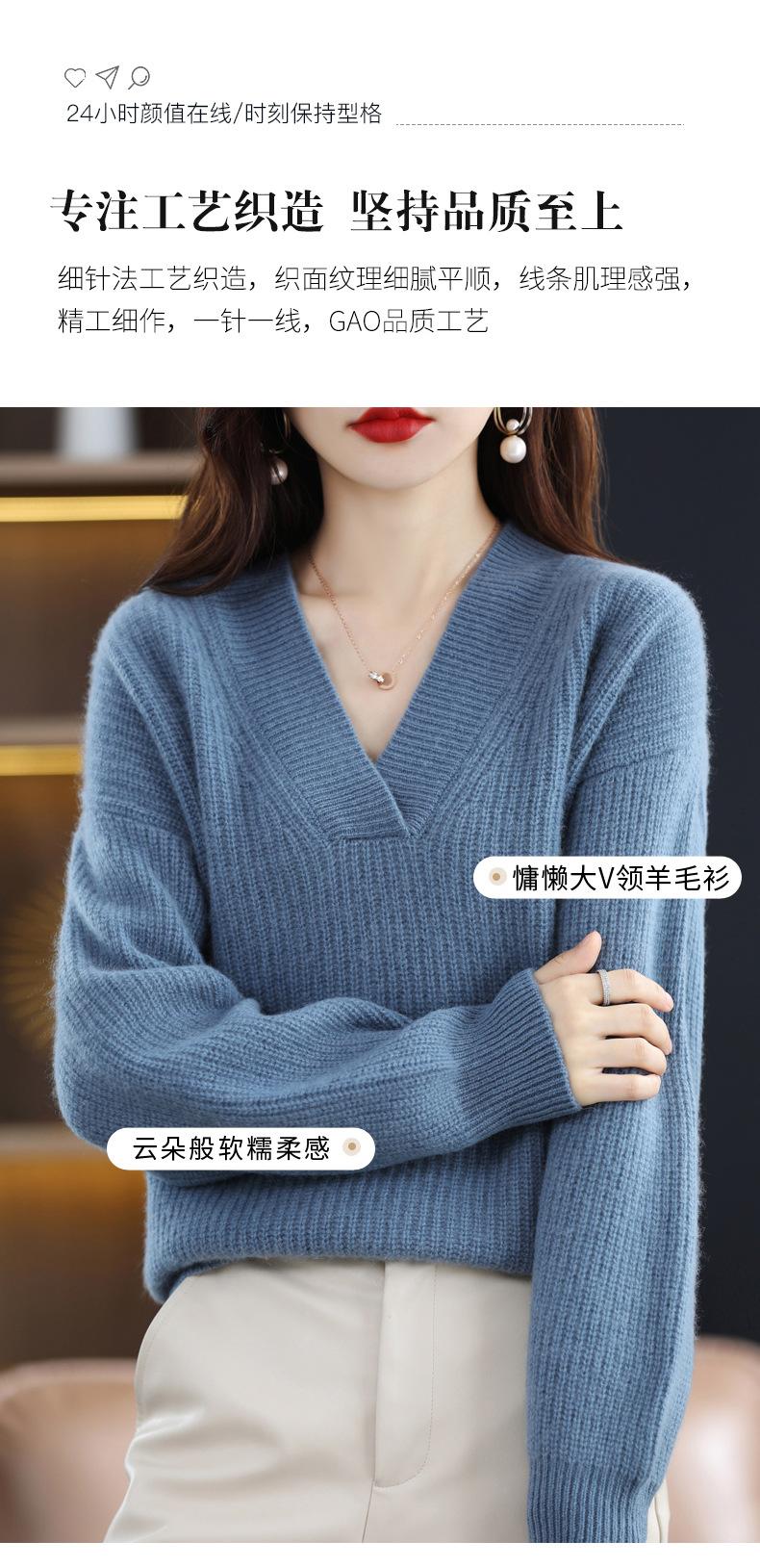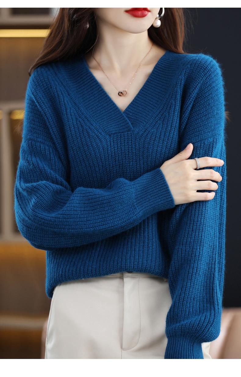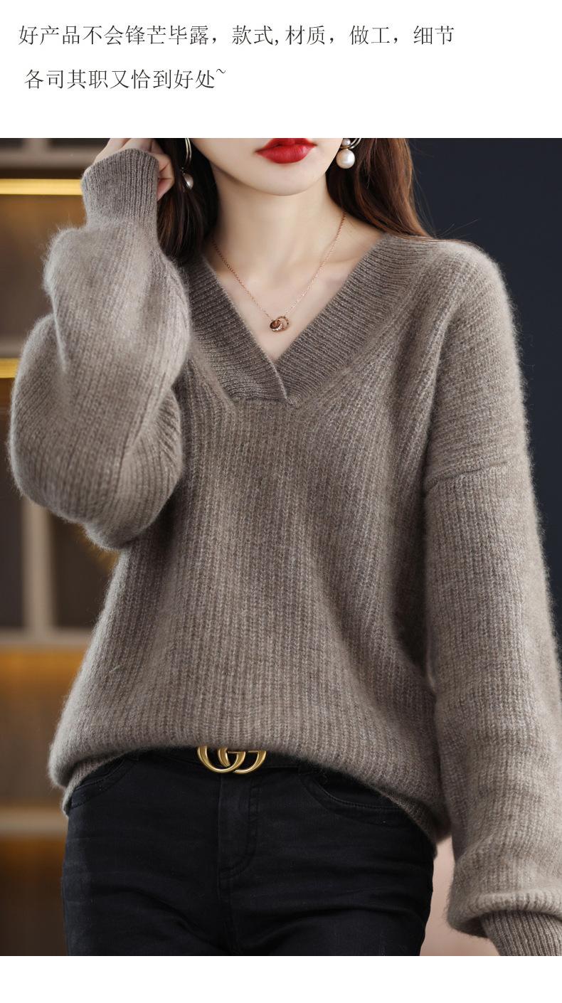2024 Novo Outono e Inverno Caxemira Decote V Pulôver Tricot Feminino Manga Longa Cor Pura Solto Camiseta Base Top Moderno