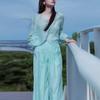 Estilo Francês Senhoras Elegante Wear High-end Luz Luxo Moda Casual Azul Wide Leg Calças Terno Profissional Verão Feminino