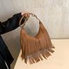 Bolsa de borla vintage de grande capacidade feminina 2024 primavera e verão nova bolsa de cor sólida distinta bolsa transversal de ombro elegante