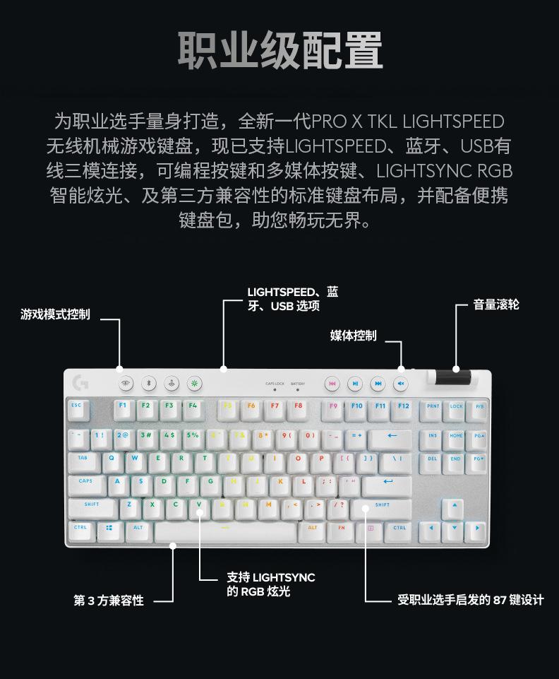 Logitech (g) Teclado Mecânico Gamer Sem Fio Pro X Tkl Sem Fio Bluetooth Três Modos