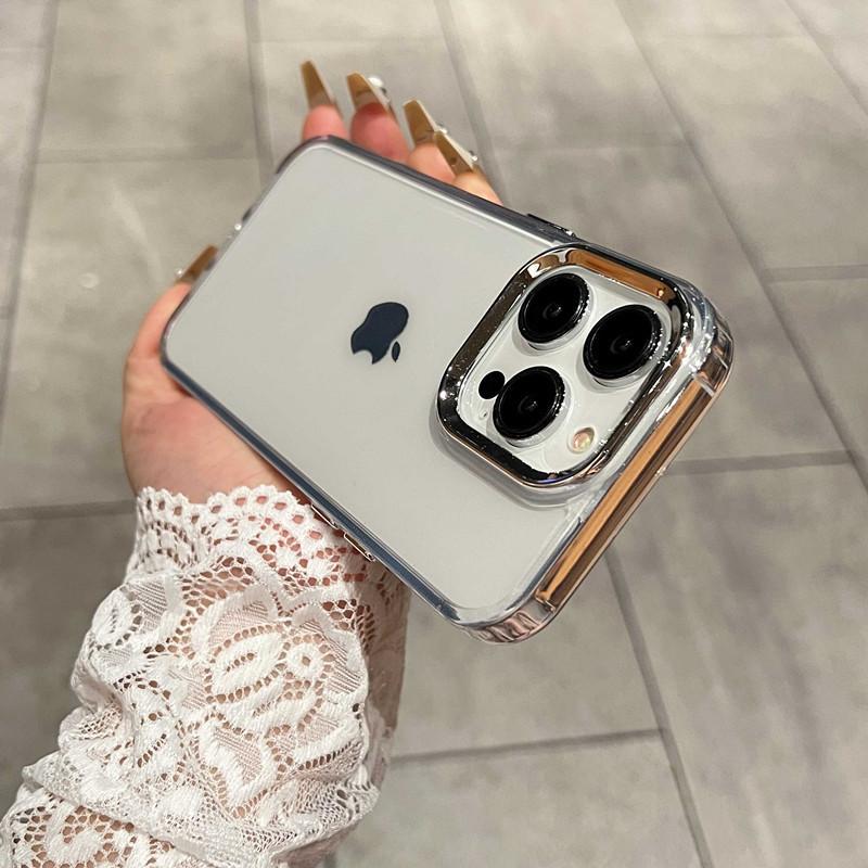 Adequado para iphone16promax capa de telefone celular transparente apple 15 capa protetora galvanoplastia 1413 airbag de quatro cantos anti-queda