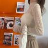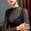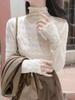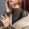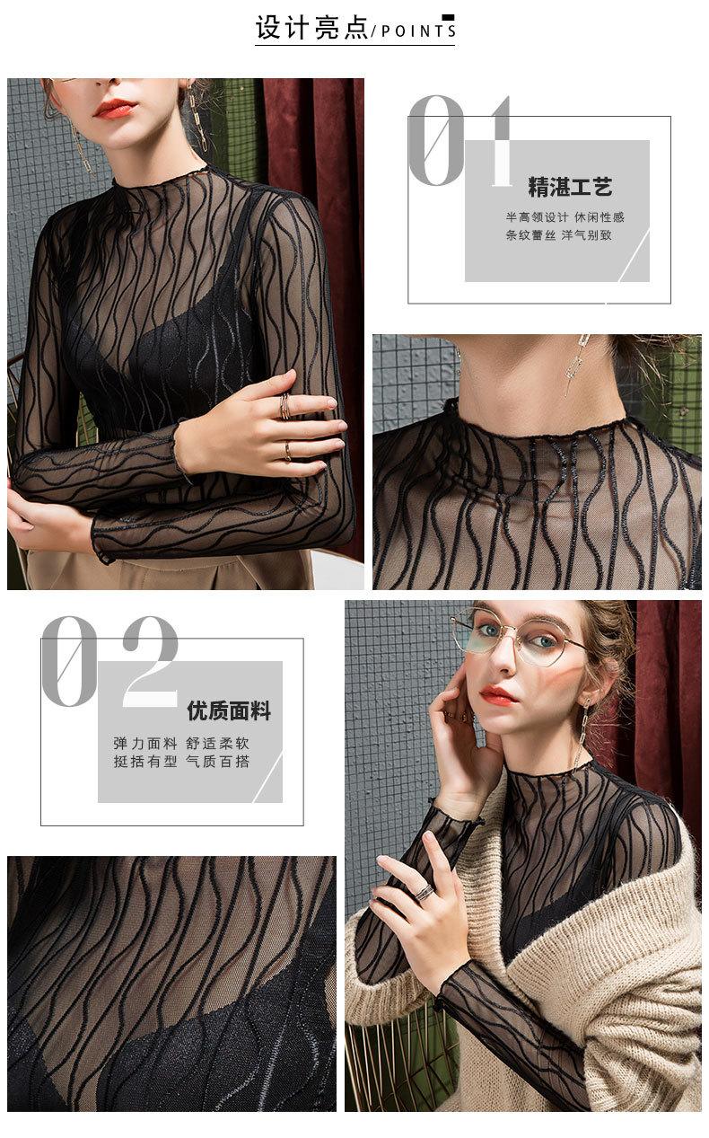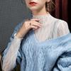 Primavera Meia-alta Colarinho Renda Base Camisa Feminina Malha Slim-fit Primavera e Outono Faixa Interna See-through Top Estilo Estrangeiro