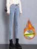 Calça jeans emagrecedora forrada de lã jeans quente elástica feminina cintura alta emagrecendo calças de lápis skinny