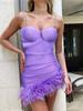 2023 cross-border novo vestido de bandagem Amazon venda quente moda europeia e americana sling apertado plissado costura de penas