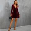 2024 roupas femininas europeias e americanas outono e inverno novo vestido de veludo com decote em V e manga comprida na cintura e formato A da Amazon