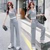 2024 Comércio exterior europeu e americano Feminino elegante casual listrado terno de lapela reta terno calça reta