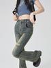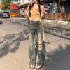 Jeans Bootcut Americano Retrô Lavado para Mulheres 2024 Novo Jeans Quente Cintura Baixa Solto Emagrecimento Casual Calça Reta