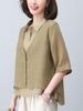 Camisa Ramie de alta qualidade feminina de manga curta 2024 Novo verão solto de meia-idade Mãe de meia-idade Estilo ocidental falso top de duas peças