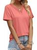 Amazon 2024 Transfronteiriça Europeia e Americana Verão Nova Casual Decote em V Renda Manga Curta Solta Camiseta Feminina