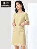 Zhen Xi Novo vestido feminino de manga curta fita costurando elegante solto pescoço redondo saia curta reta DN812