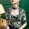 Outono 2022 Novo Pure Desire Estilo Gola Vertical Gola Base Camisa Feminina Meia Manga Estampada Sexy Hollow Manga Média T-shirt