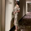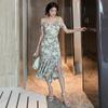 2024 Verão nova roupa feminina sexy off-shoulder babado off-shoulder low-cut alça vestido floral 1899