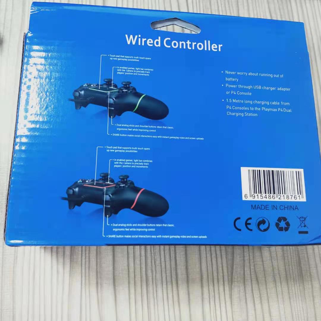 Controlador com fio PS4 revestido de plástico de molde privado, 3 cores no total: vermelho e preto, azul e preto, verde e pretoSem manual de instruções