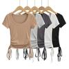 Estilo europeu e americano grande pescoço redondo sexy cordão manga curta t-shirt mulheres verão novo fio apertado curto spice girl top
