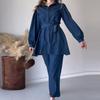 Outono 2024 nova Amazônia europeia e americana cross-border popular roupas femininas cor sólida estilo casual solto top duas peças terno moda