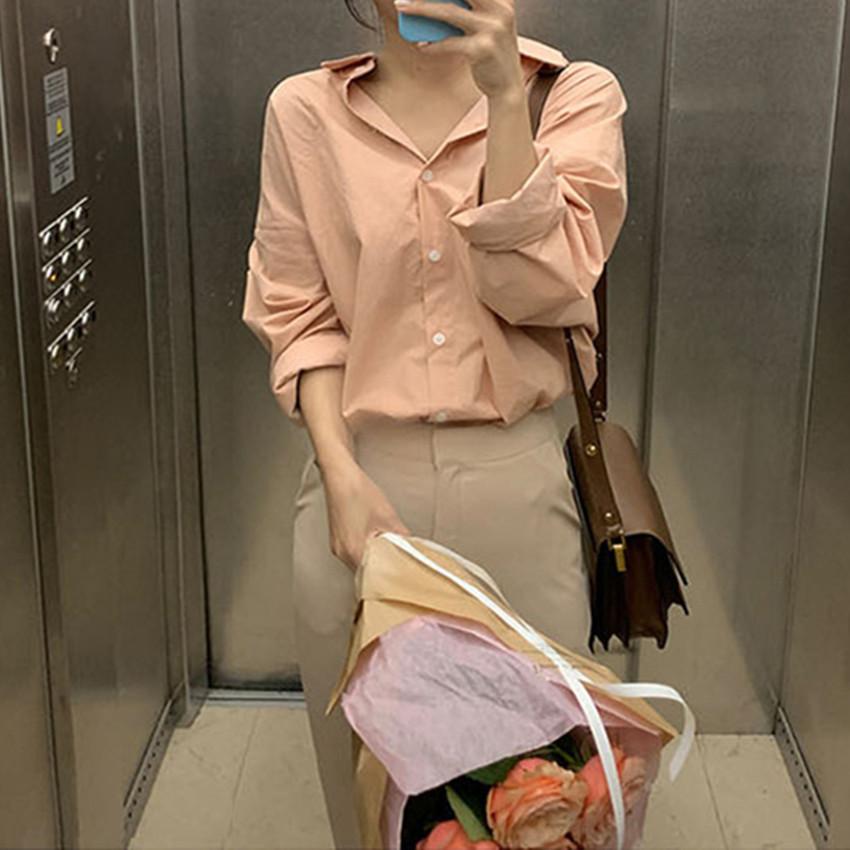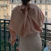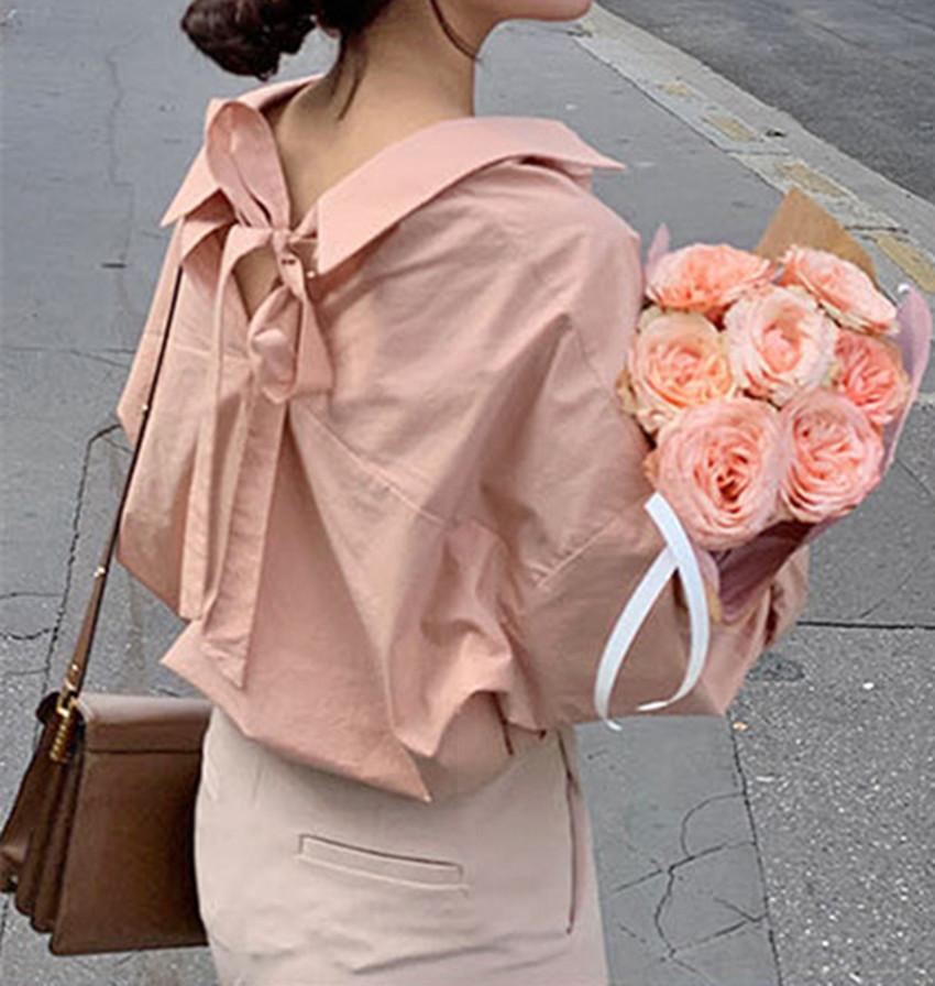 Primavera e Outono Camisa Chique Feminina Design Sense Nicho Costas Strap Care All-match Top Sweet Age-reduzindo estilo estrangeiro