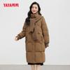 Jaqueta de Penas de Pato para Mulheres 2025 Outono/Inverno Novo Xale Tricotado Longo Espessado Gola Alta Casaco Quente Solto J
