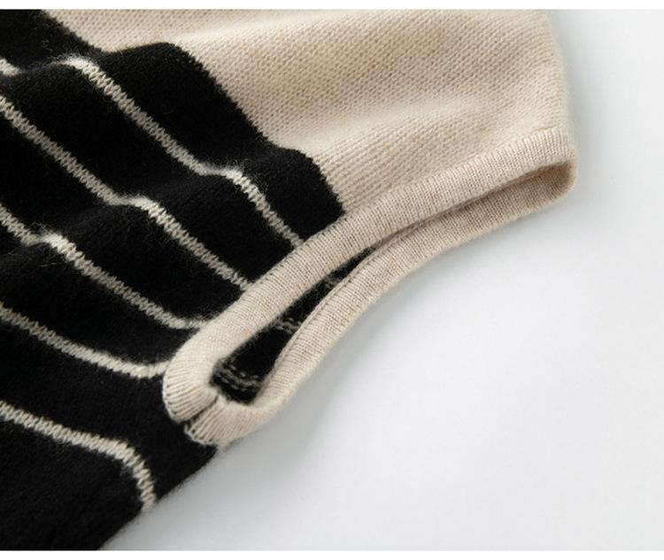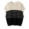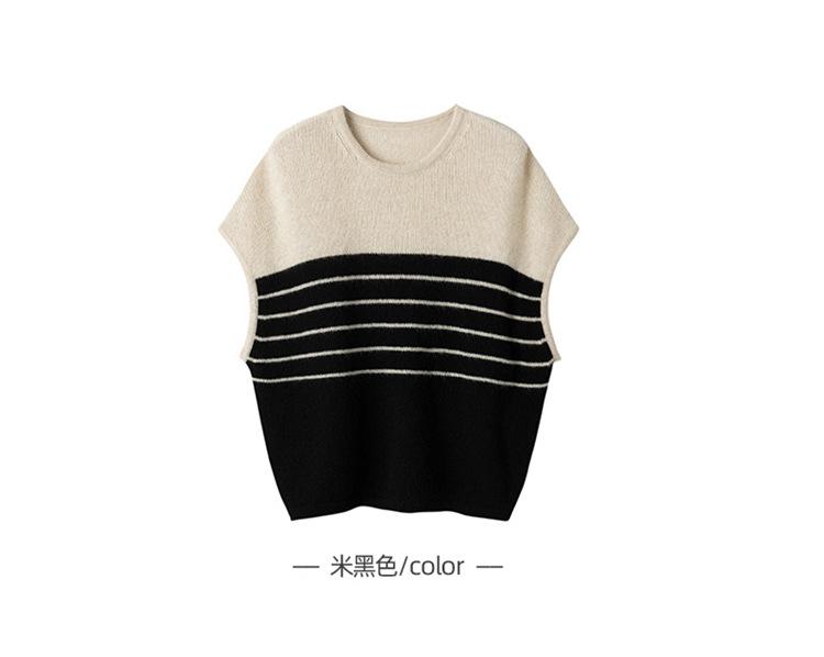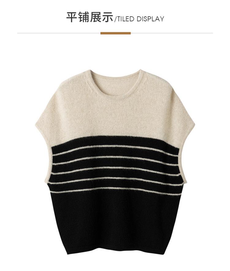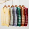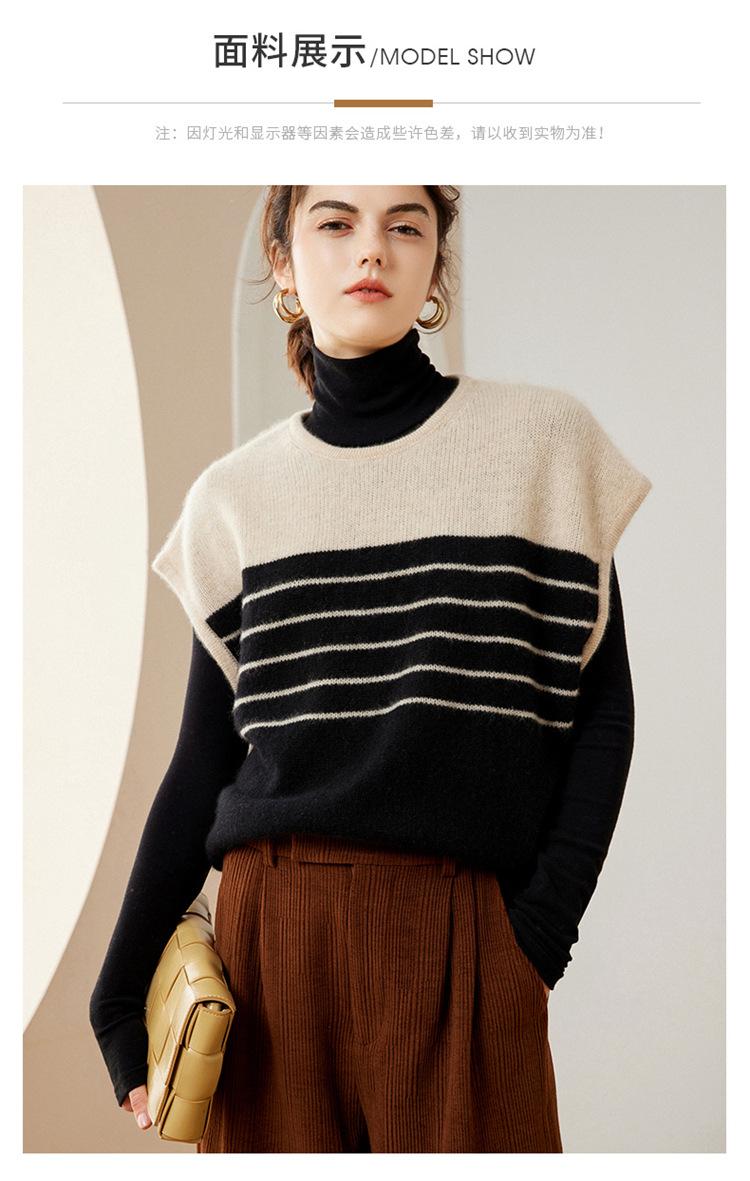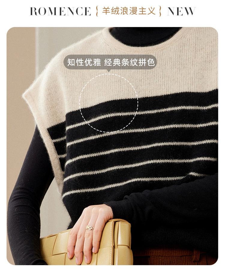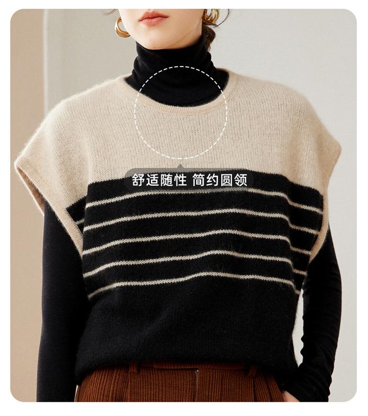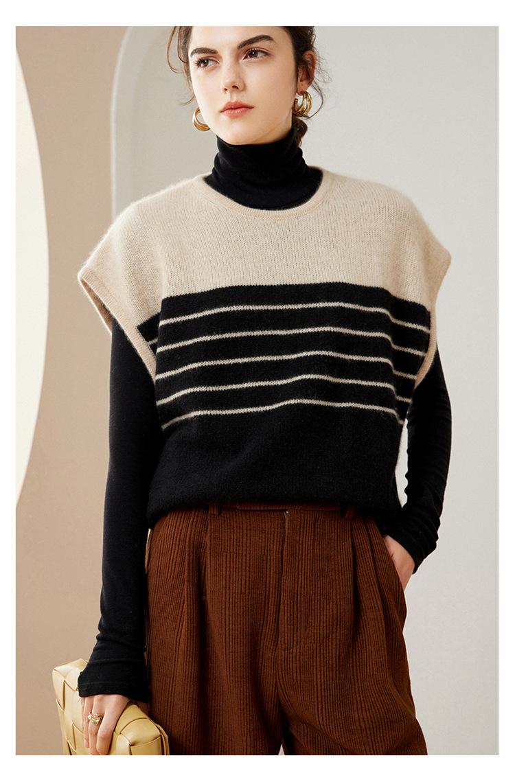 Colete simples de caxemira outono e inverno solto sem mangas camada superior colete de tricô listrado suéter curto de caxemira gola redonda feminino