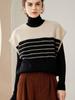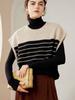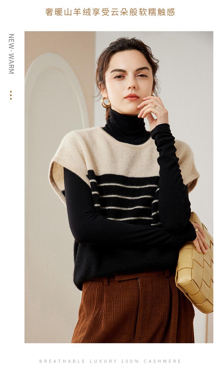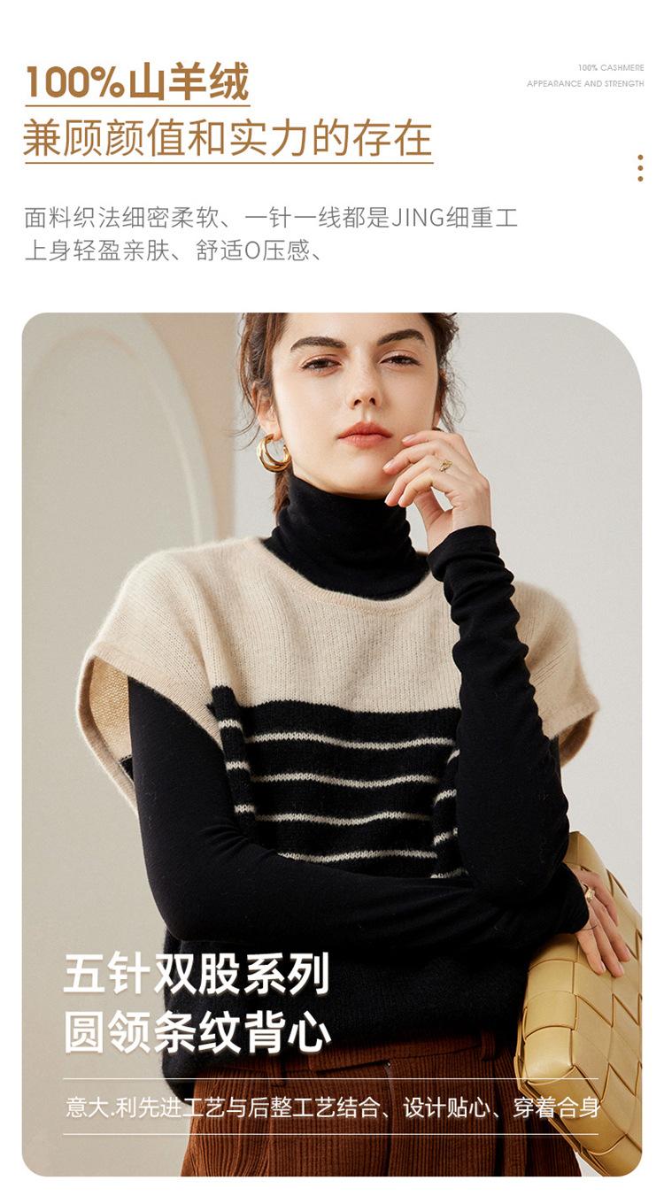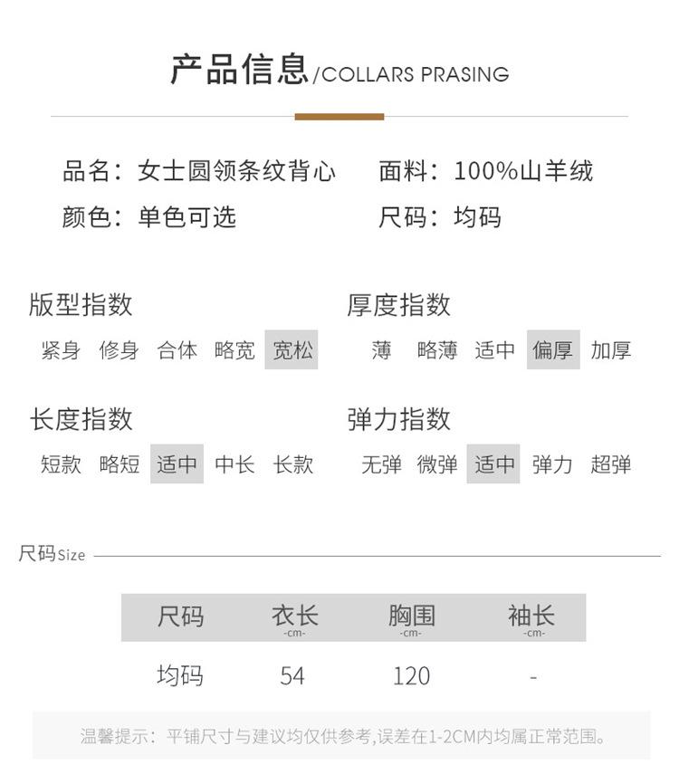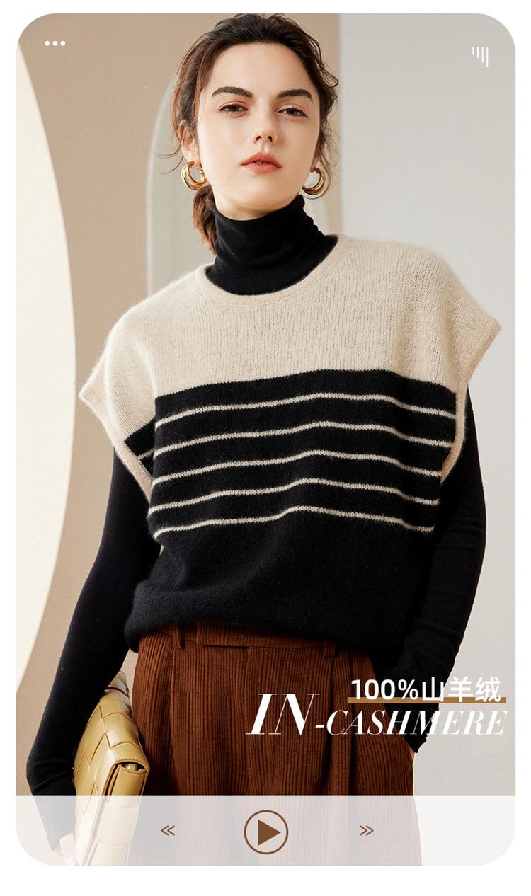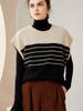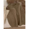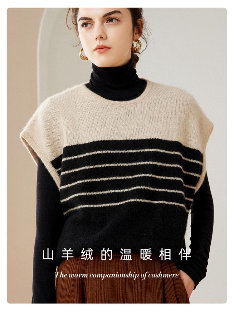 Colete simples de caxemira outono e inverno solto sem mangas camada superior colete de tricô listrado suéter curto de caxemira gola redonda feminino